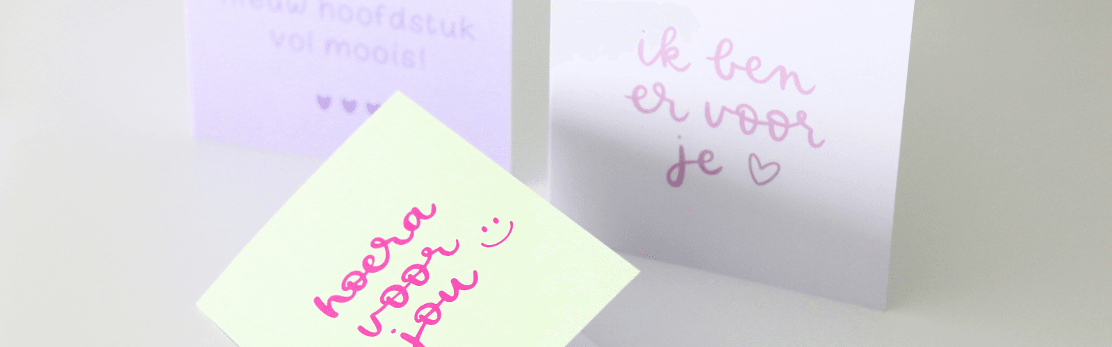 Bijzondere, handgeschreven kaarten met meevoelende teksten, op stevig papier gedrukt en met zorg voor je ingepakt.