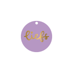Rond label met een klein gaatje met de tekst ‘Liefs’. Het origineel is handgeschreven en -getekend.