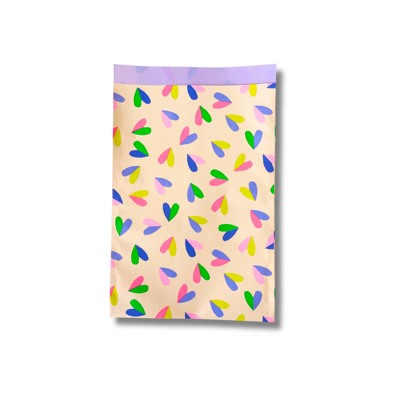 Deze cadeauzakjes maken je spontaan blij! De vrolijke hartjes in allerlei kleuren springen eruit op de zachte crèmekleurige achtergrond. Perfect voor verjaardagen, bedankjes of gewoon zomaar.