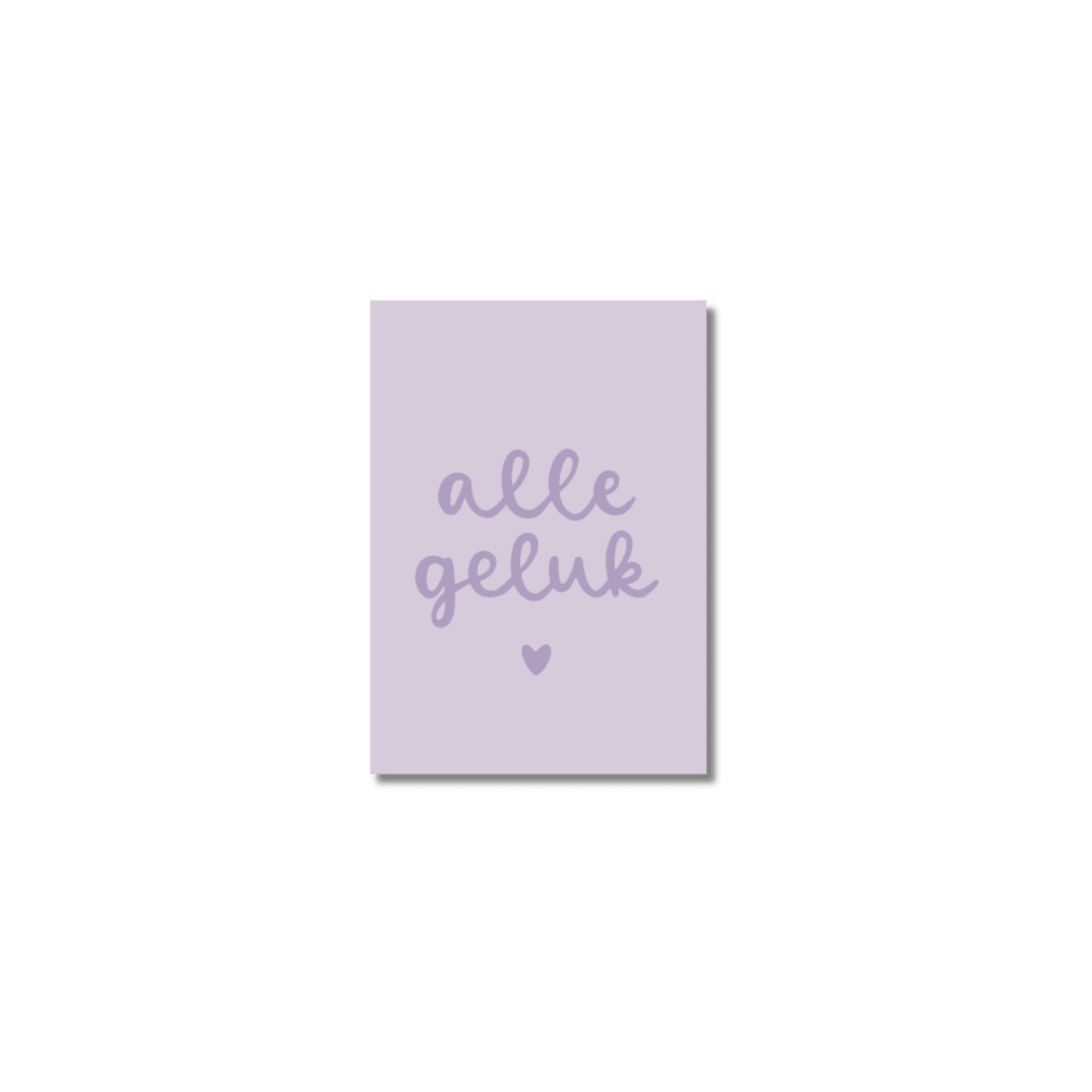 Minikaartje met de tekst ‘Alle geluk’. Het origineel is handgeschreven en -getekend.