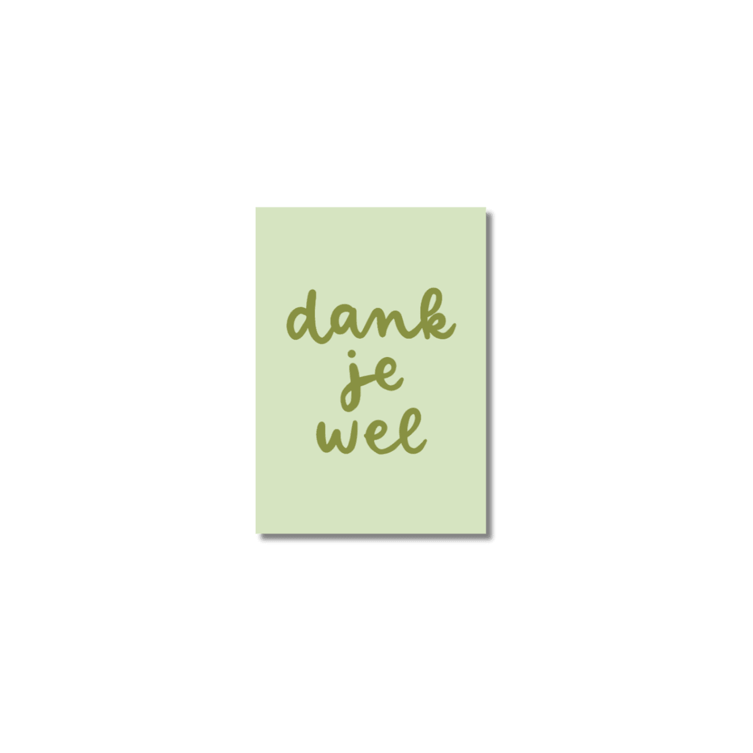 Minikaartje met de tekst ‘Dank je wel’. Het origineel is handgeschreven.