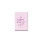 Minikaartje met de tekst ‘De liefste dat ben jij’. Het origineel is handgeschreven en -getekend.