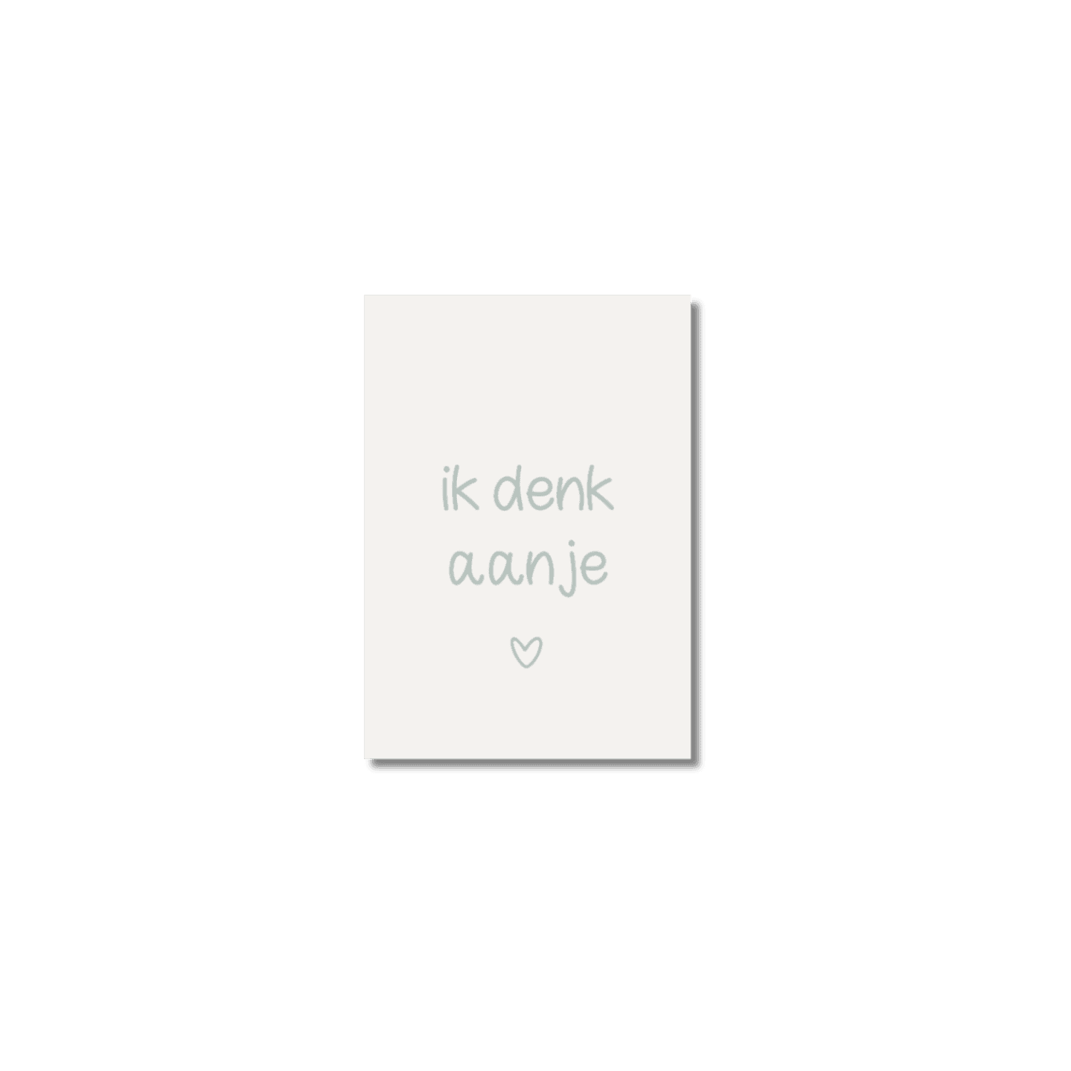 Minikaartje met de tekst ‘Ik denk aan je’. Het origineel is handgeschreven en -getekend.