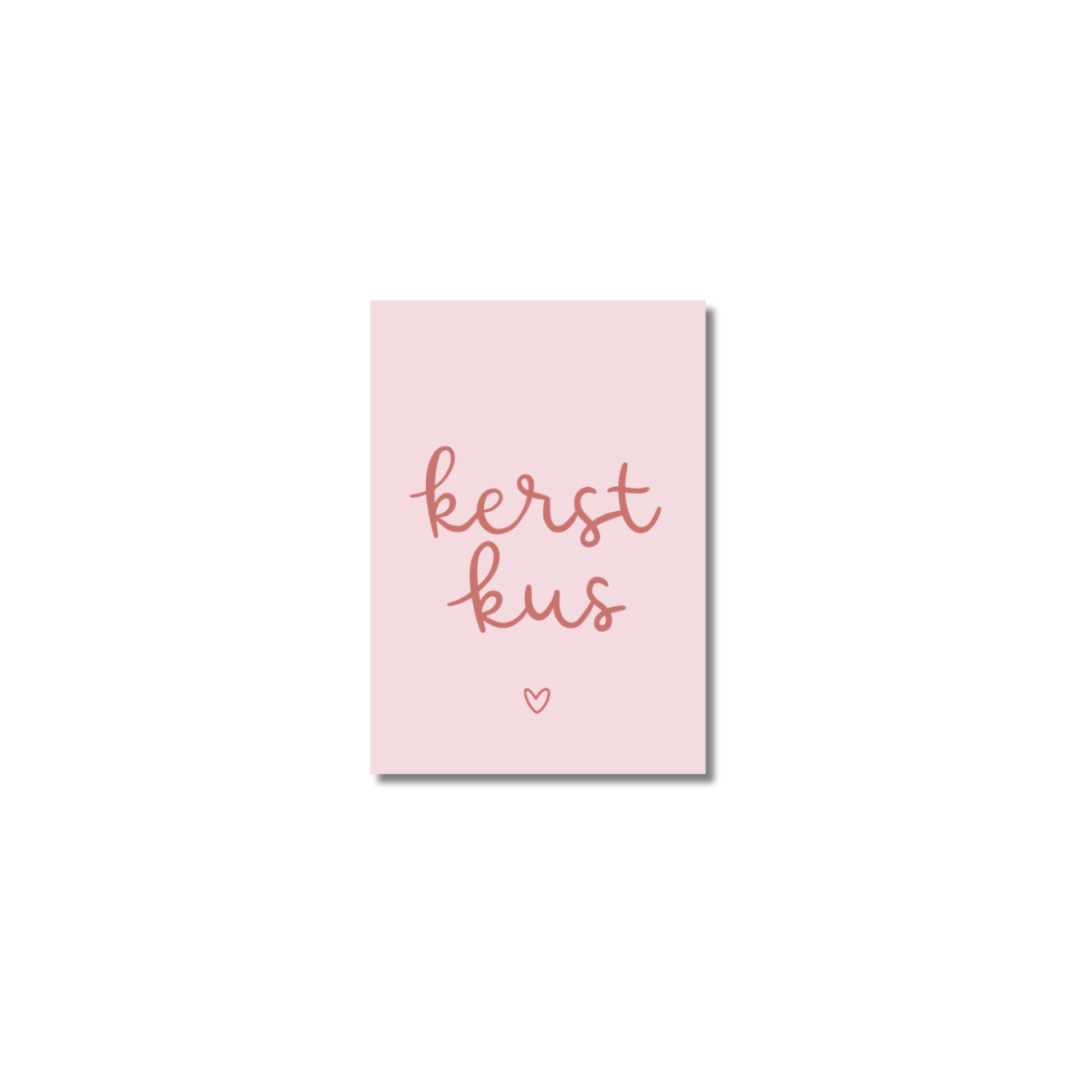 Minikaartje met de tekst ‘Kerstkus’. Het origineel is handgeschreven en -getekend.
