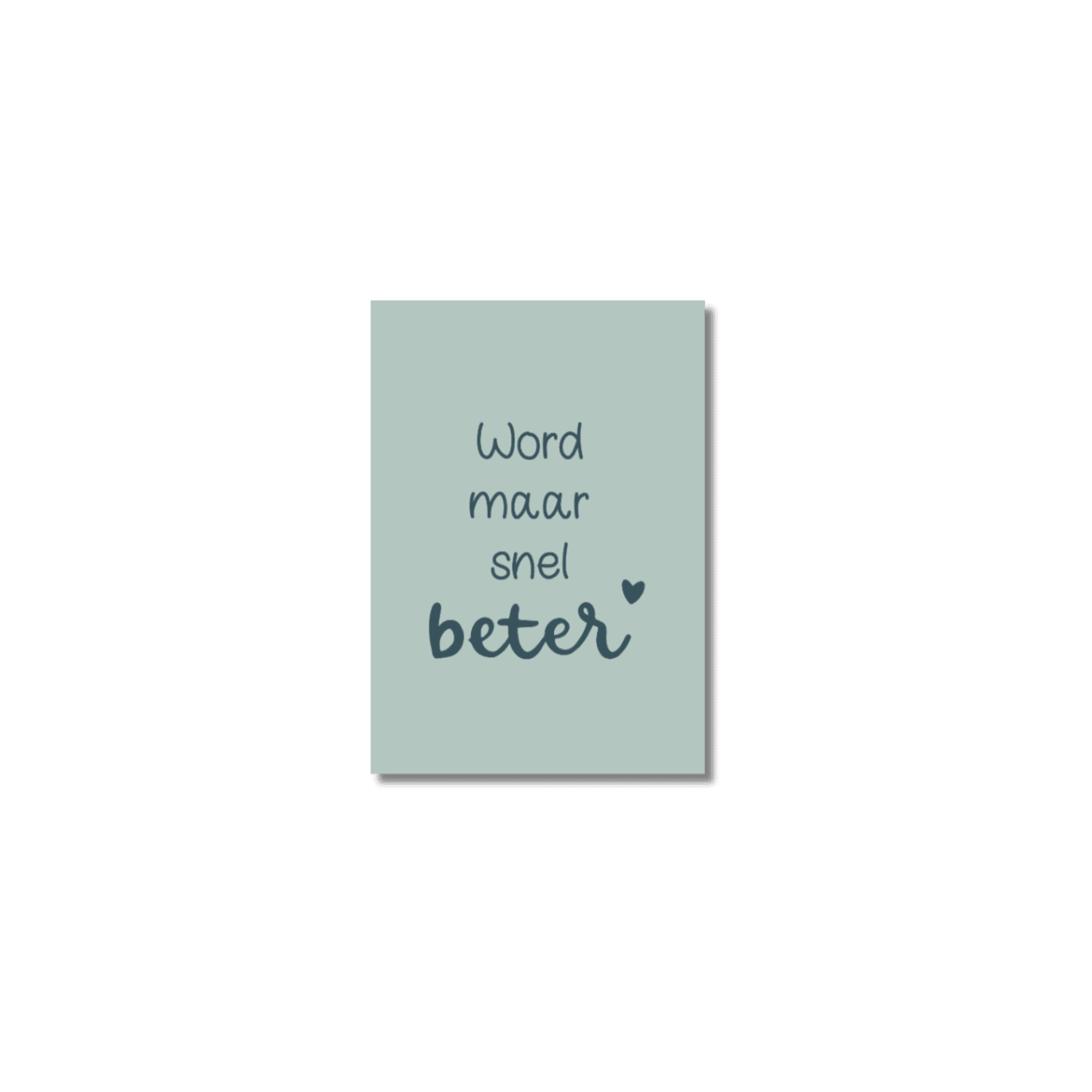 Minikaartje met de tekst ‘Word maar snel beter’. Het origineel is handgeschreven en -getekend.
